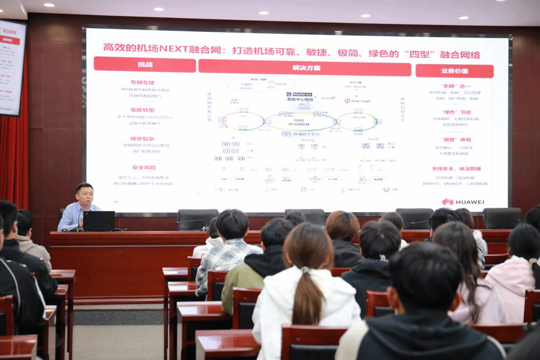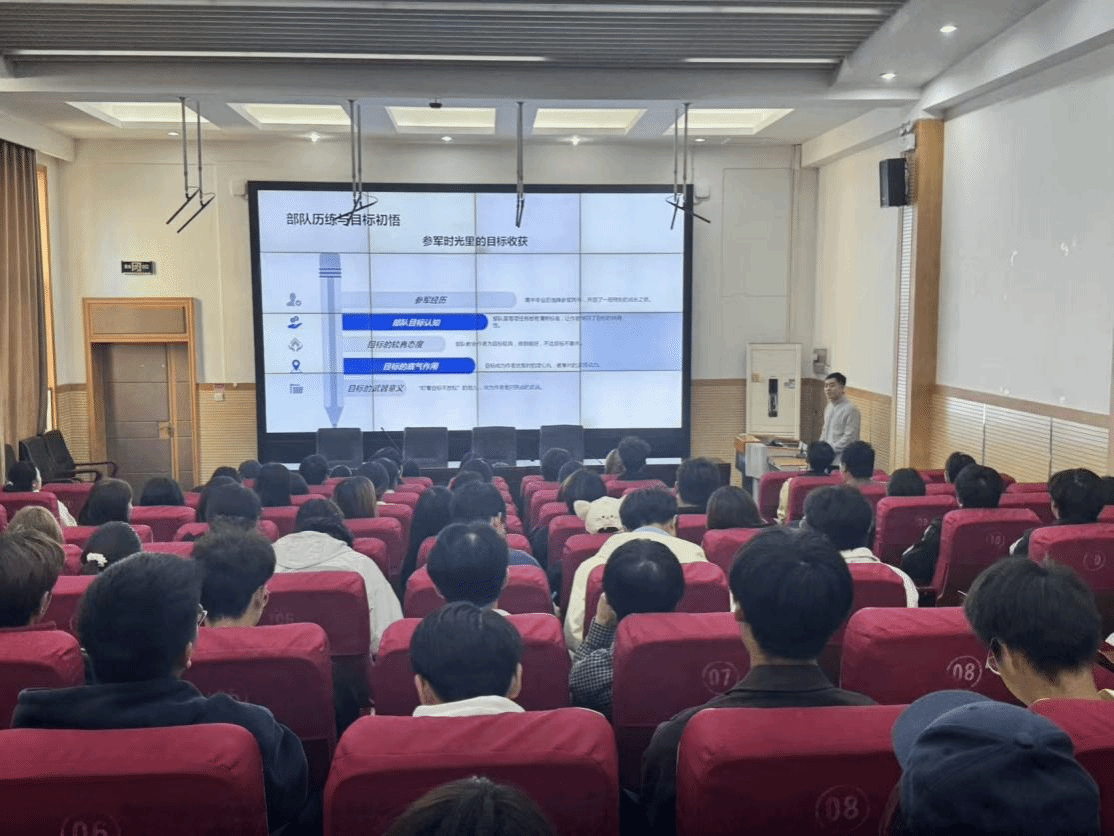16时起,“校友讲堂”系列报告会在图书馆学术报告厅拉开帷幕。首场报告由华为技术有限公司经理、2011届校友李雄主讲,他以“网络通信的未来与我们的机会——毕业生的十年回望”为题,结合自身职业发展历程,分享了行业前沿动态与个人成长感悟,为在校师生和年轻校友提供了宝贵的经验借鉴。随后2021届校友苗洪源结合自身经历,以 “军旅淬炼青春,升学续写华章” 为主题分享参军、升学感悟,为有参军入伍和专升本意向的在校生提供了极具价值的参考,为在校生规划未来发展路径提供了有益借鉴。