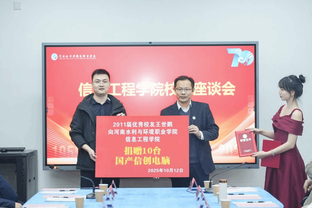 2025年10月12日下午,河南水利与环境职业学院信息工程学院隆重举行建校70周年成果展暨校友返校活动。本次活动以“七秩风华,水环筑梦”为主题,汇聚了学院领导、在职与退休教师代表以及来自各行各业的杰出校友,共同回顾学院发展历程,展望未来蓝图。