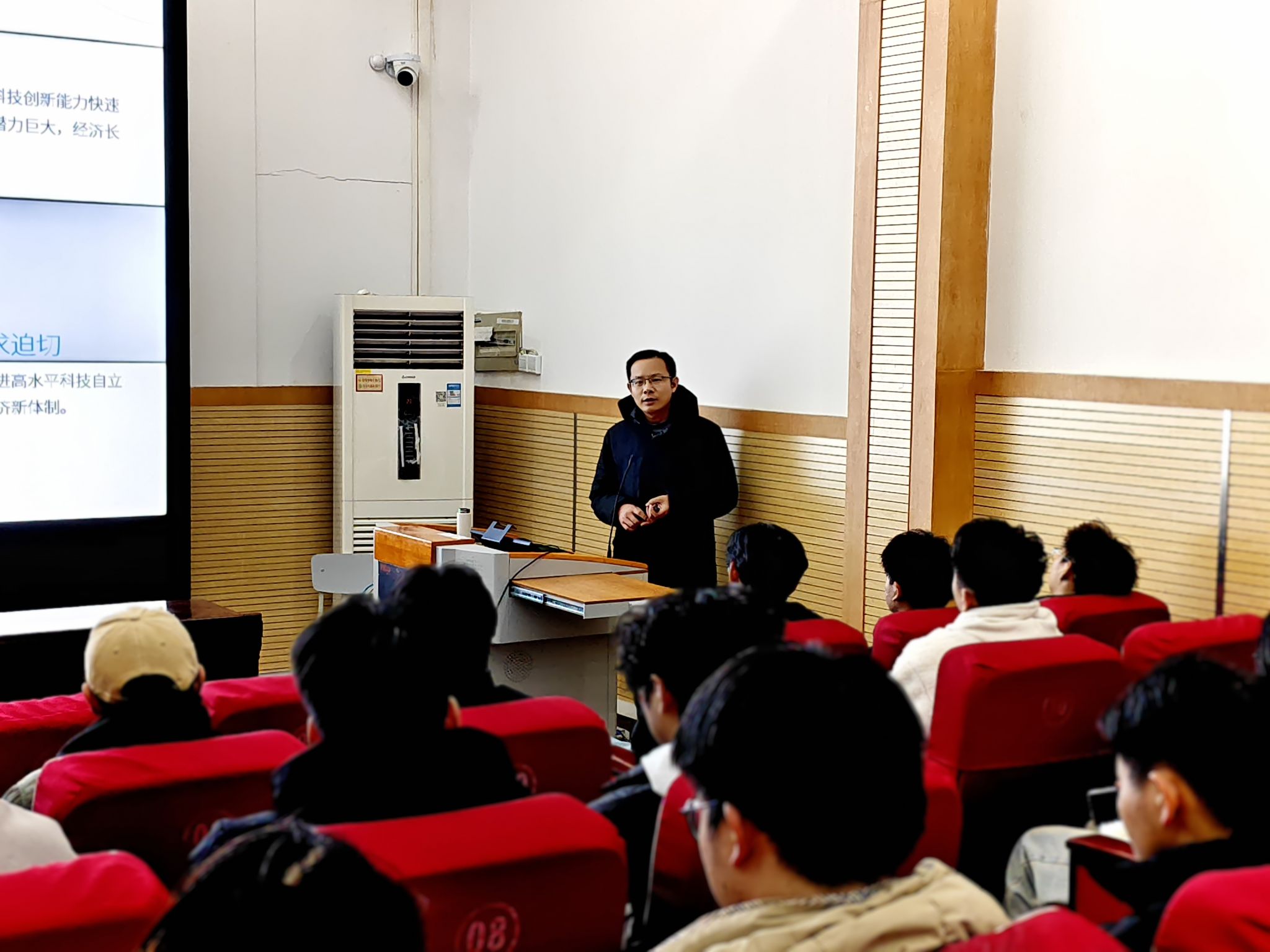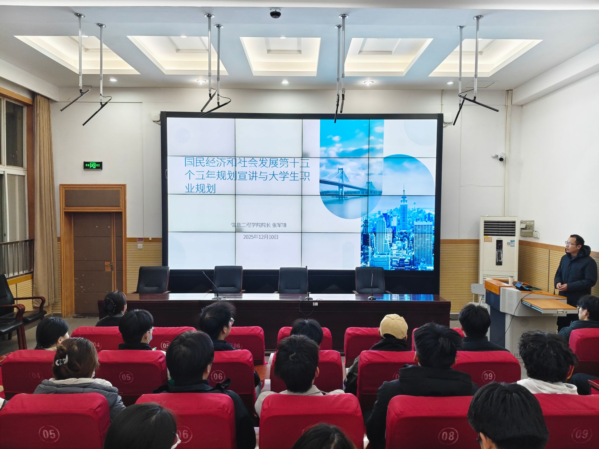 12月10日,信息工程学院院长张军锋以“国民经济和社会发展第十五个五年规划与大学生职业规划”为主题,为全体学生干部讲授了一堂内容丰富、意义深远的思政课,引导学生将个人发展融入国家战略大局。