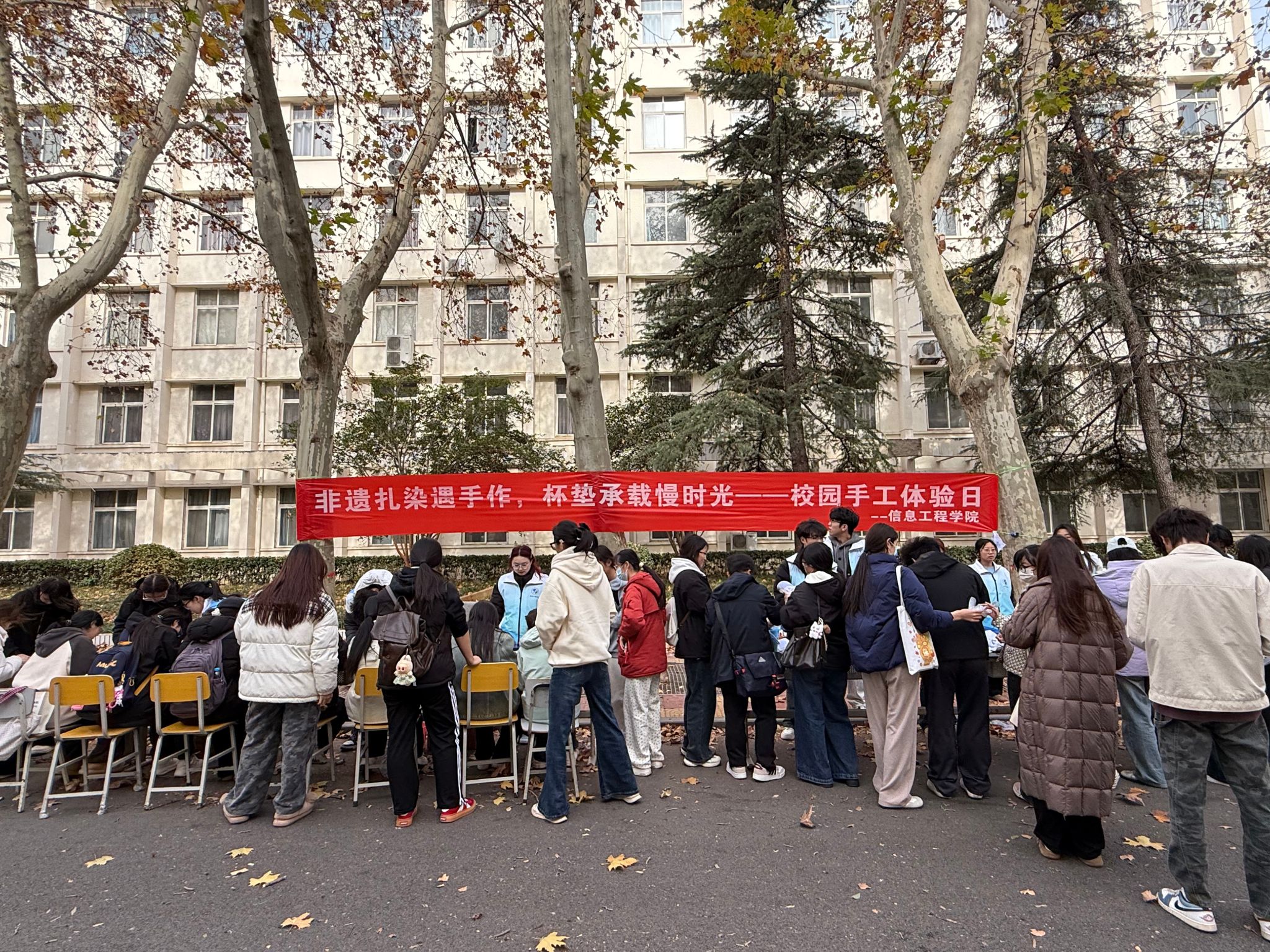 11月24日,信息工程学院举办校园手工体验日活动。“青出于蓝,染就华章”扎染文化体验与“巧手制垫,杯暖时光”手工创作两大主题活动同步开展,全院在校师生踊跃参与,在指尖创意与传统文化的碰撞中,度过一段温馨惬意的校园时光。