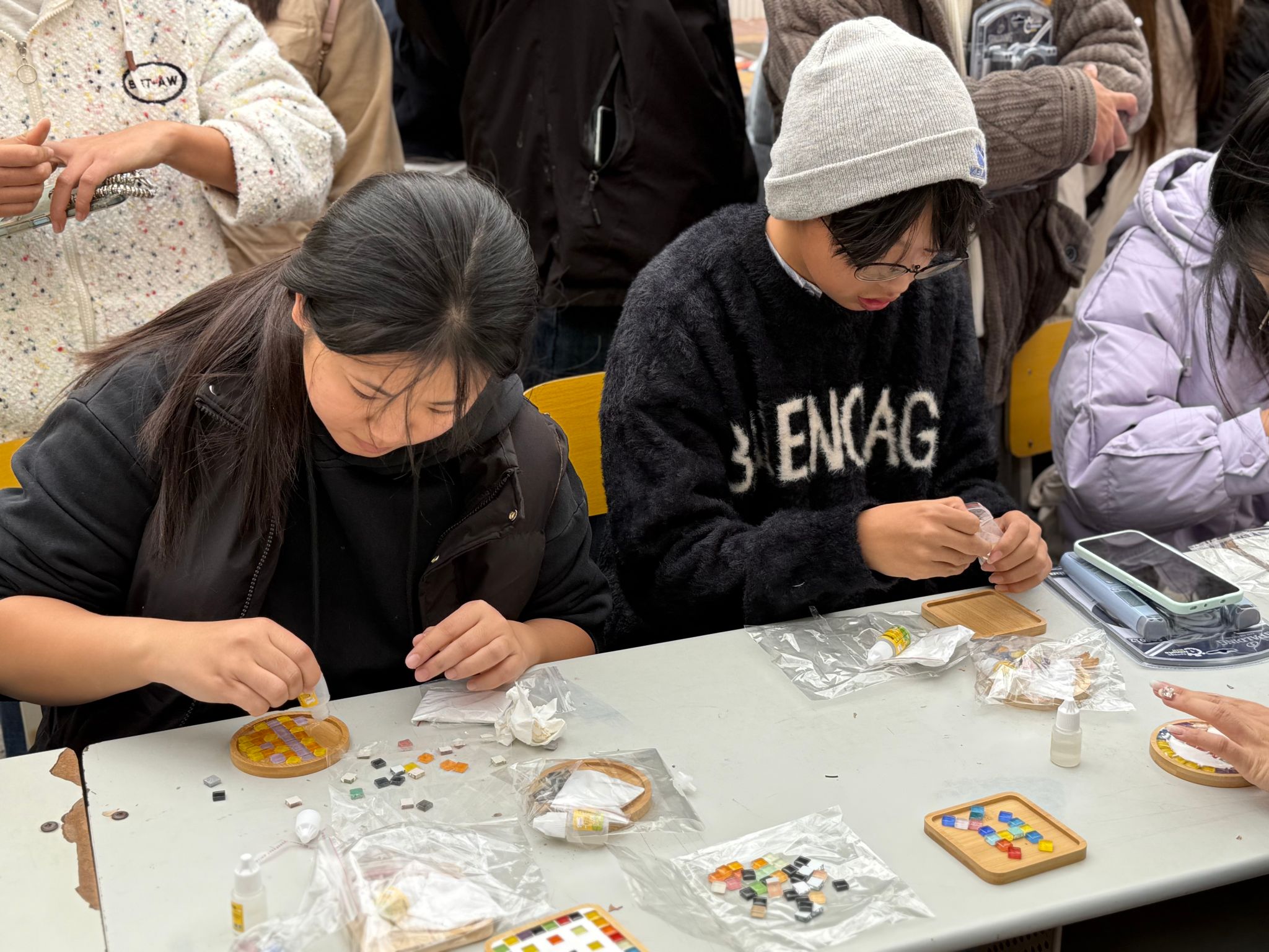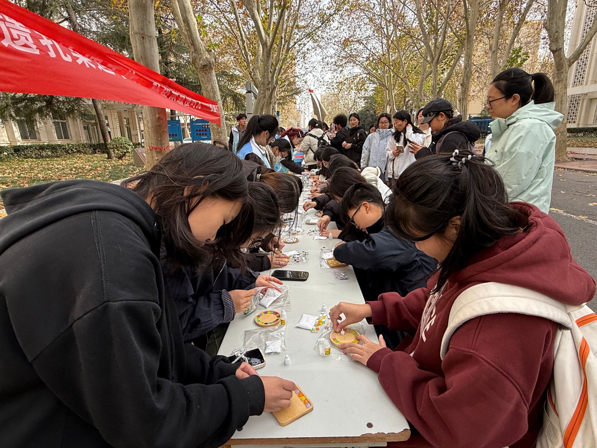 杯垫制作区同样创意涌动,参与者们领取材料后迅速投入创作,或专注拼接装饰,或用心塑形设计,在动手过程中缓解学业压力,在互助交流中增进情谊,现场满是专注与欢笑。